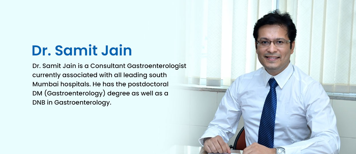 Dr. Samit Jain is a Consultant best gastroenterlogist in mumbai currently associated with all leading south Mumbai hospitals. He has the postdoctoral DM (Gastroenterology) degree as well as a DNB in Gastroenterology.